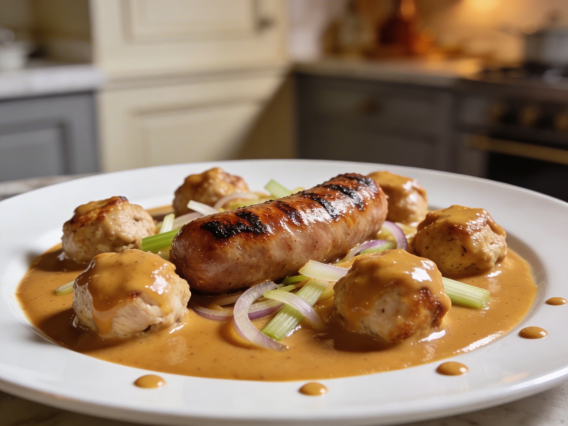 Gotowy Sos Bretonne podaje się ciepły, ale nie wrzący, najlepiej do drobiu, kiełbasy, wieprzowiny lub ryb.