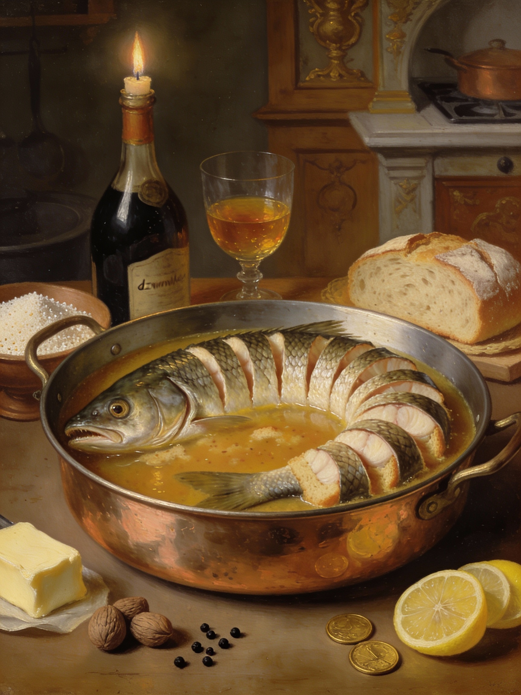 Przepis ten szybko się jednak zaczął upraszczać, co potwierdził Paul Tremo, wywodzący się z Francji kucharz króla Stanisława Augusta Poniatowskiego. Jego receptura bardziej nawiązuje do francuskiej wersji – także on nacierał rybę solą – ale sam wywar jest już znacznie mniej aromatyczny i zagęszcza się już tylko garścią tartego chleba: